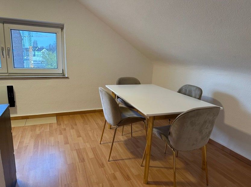 This is a fully furnished apartment located in the attic level (3rd floor) of a very well-maintained building with 8 residential units, built in 1975, in Recklinghausen-Süd. The 40 m² of living space includes one large living/sleeping area, a separate spacious kitchen that is fully equipped, and a bathroom with a bathtub.