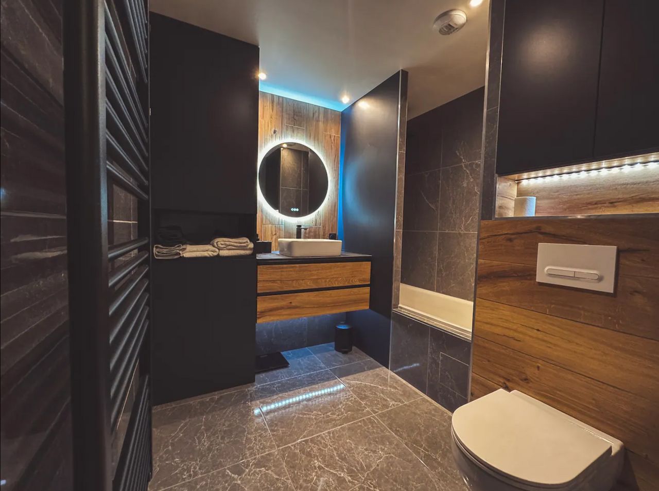 Les atouts : * Salon spacieux et lumineux : équipé d’un canapé convertible 2 places, table pour 6 personnes, TV (Netflix inclus) et console Nintendo Switch (Mario Kart, Smash Bros etc) avec un accès direct à la terrasse pour profiter de l’extérieur. * Cuisine neuve entièrement équipée : électroménagers intégrés (four, micro-ondes, plaques à induction, lave-vaisselle, réfrigérateur/congélateur, machine à café). * Grande chambre avec lit double (140x180 cm), dressing pour le rangement et ac...
