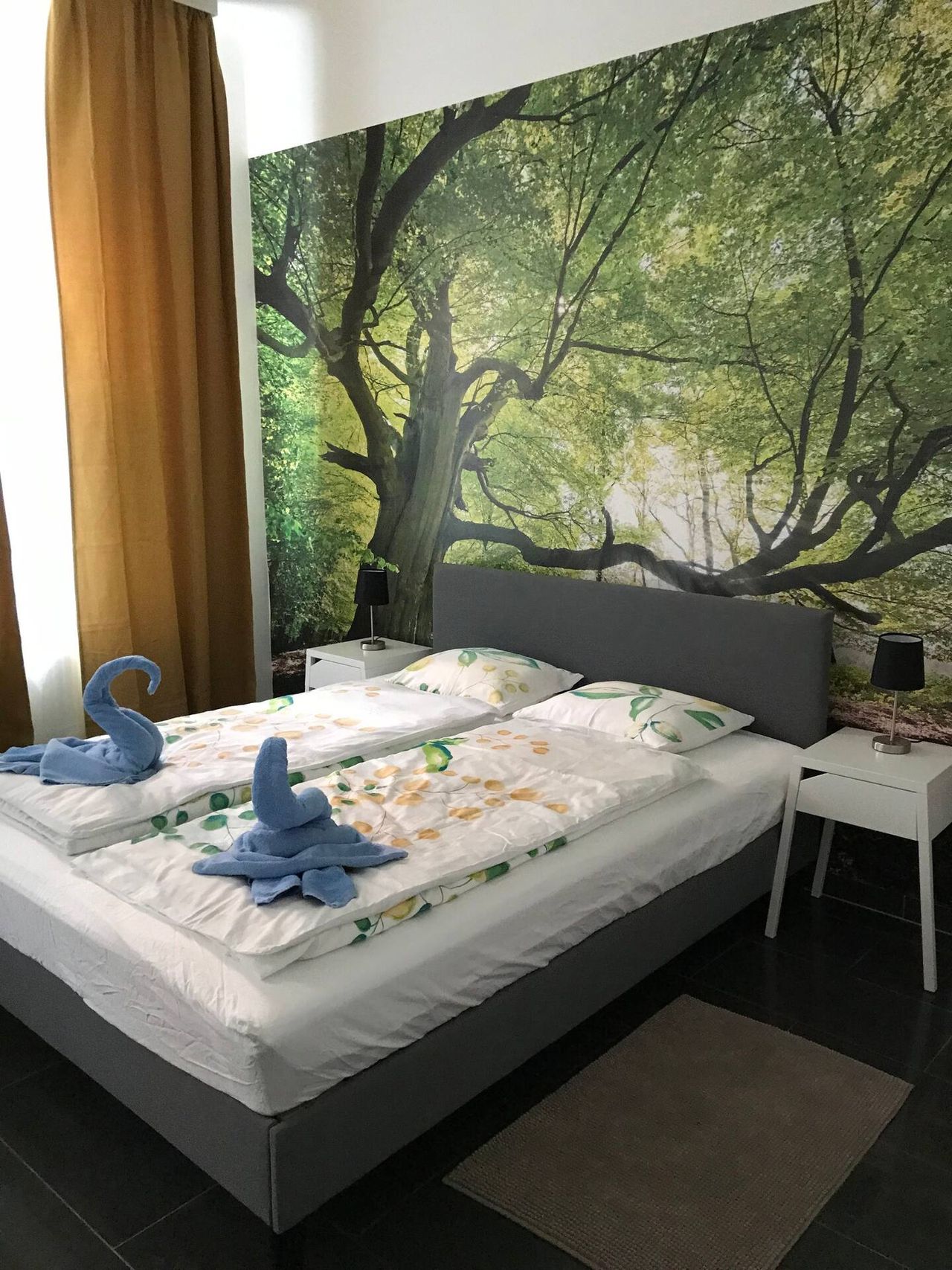 Ideally located between the historic Schloss Schönbrunn and the bustling Westbahnhof railway station. The Apartment includes a living room and 2 bedrooms and it is optimal for up to 5 people (1 double bet and 3 single beds). The apartment is on the ground floor with a private terrace.