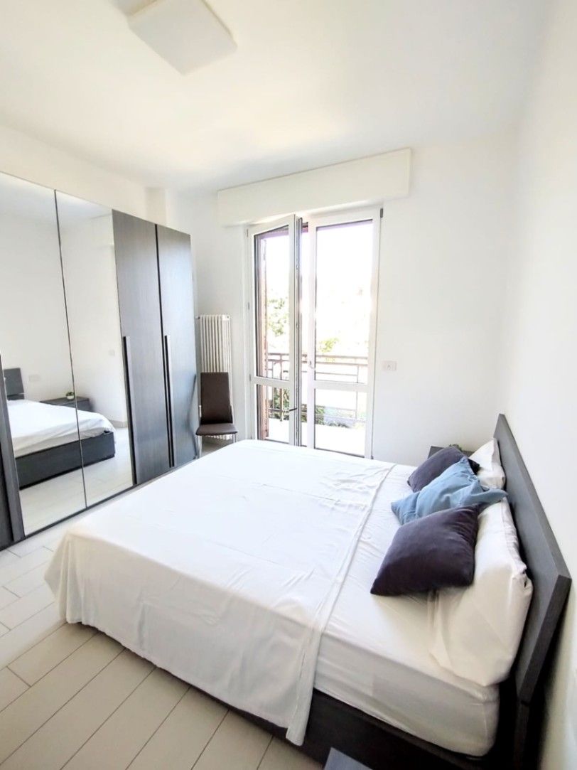 Spacious and modern, recently renovated one-bedroom apartment. The apartment comprises a large hallway, a living area with a sofa bed, a fully equipped kitchen, a double bedroom, and a bathroom with a shower and washing machine. The apartment has two views (garden and street) and two very spacious balconies. The area is very quiet and residential, and central Milan can be reached in 35 minutes by public transportation.