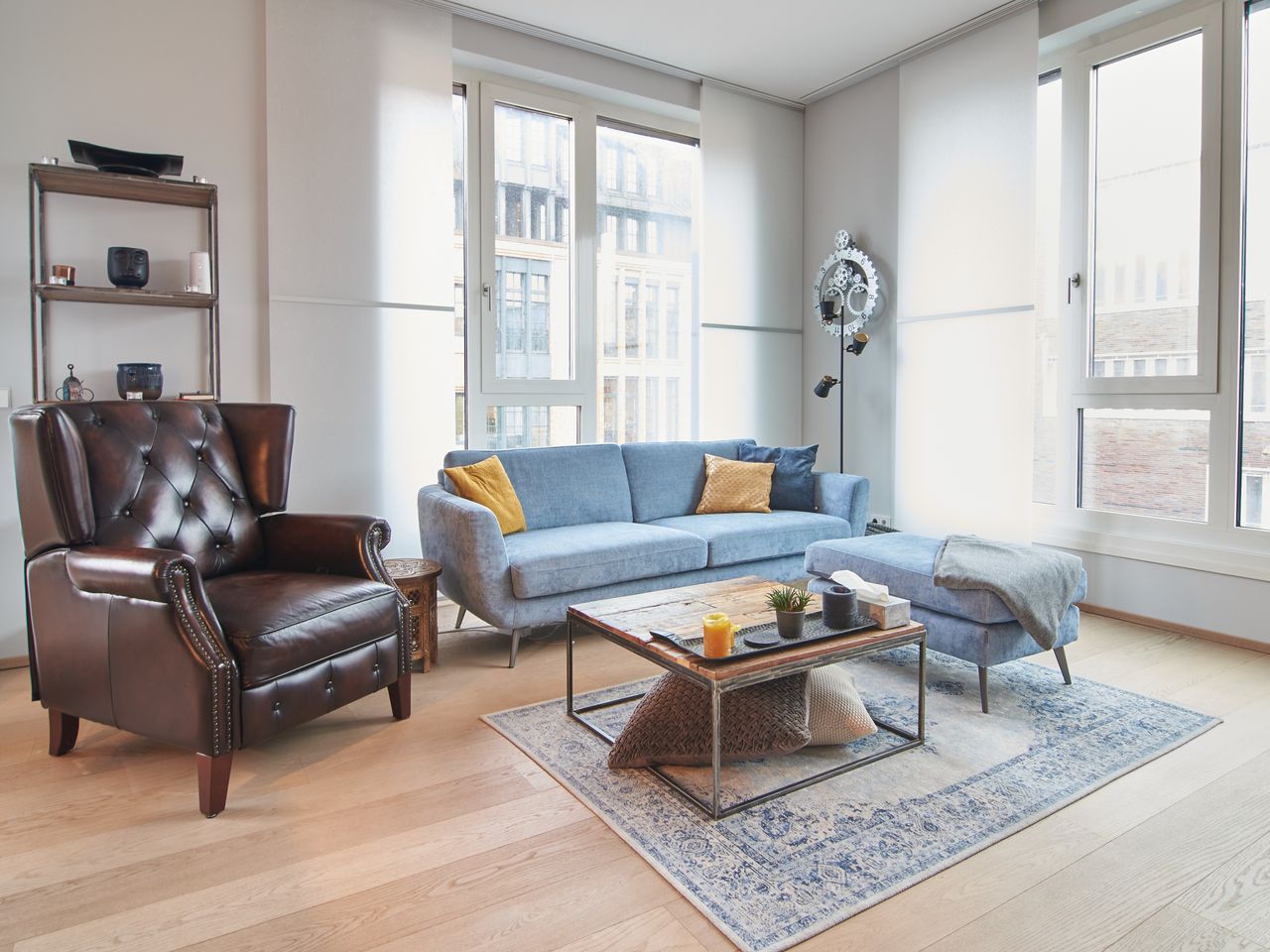 Managed by Wunderflats: Situated in the heart of Hamburg’s prestigious HafenCity, this residence at Koreastrasse offers an exceptional living experience defined by architectural precision and refined interior design. The apartment features an expansive open-plan living and dining area, where floor-to-ceiling windows frame the urban landscape and bathe the oak parquet flooring in natural light. The interior aesthetic is a masterclass in modern comfort, pairing a designer leather wingback chair a...