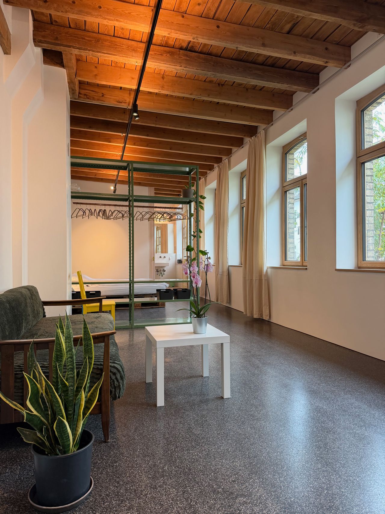 This apartment offers a rare combination of urban living and tranquility. A green courtyard with bamboo and abundant plants creates an almost private oasis in the heart of the city. Inside, the open loft-style layout features high ceilings, large wooden windows, and modern design. The contrast between industrial charm and nature gives the apartment a distinctive, relaxed atmosphere – bright, peaceful, and full of character. Perfect for longer stays, remote work, or business guests.