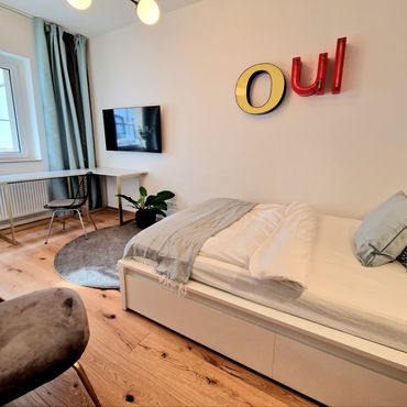 Centrally located in Bilk with top traffic connections *** stylishly furnished *** new 1 bedroom apartment with kitchen *** with cleaning
