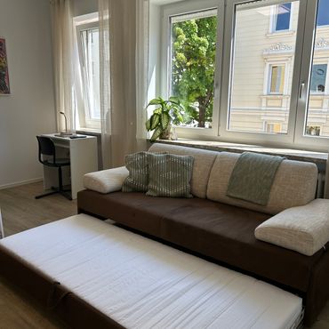 Studio apartment with a beautiful view in the heart of Frankfurt.