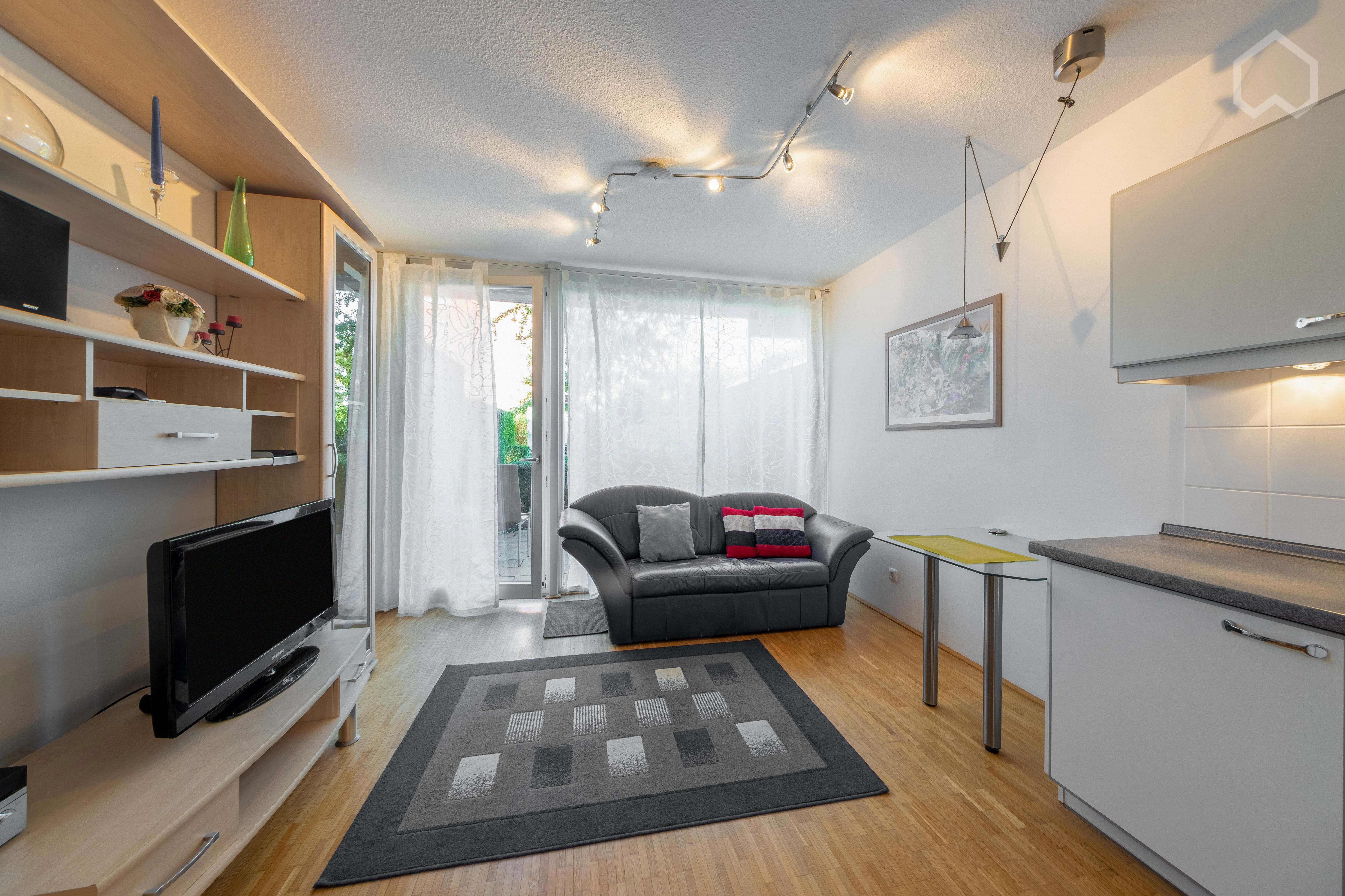 Spacious, bright and very modern furnished 2-room apartment including Wi-Fi, on the ground floor of an apartment building.