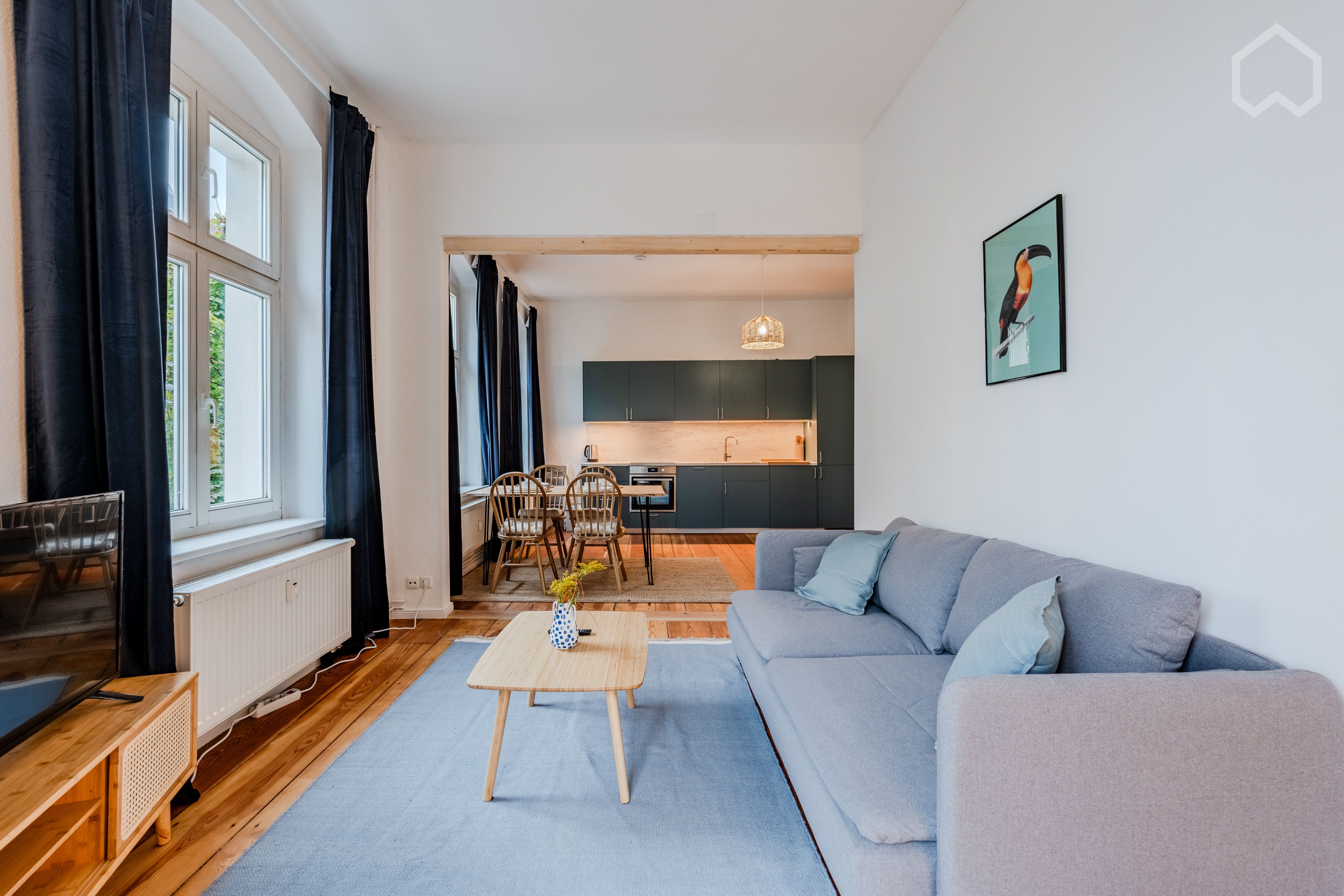 Perfect, quiet apartment in Friedrichshain (Berlin), luxury interior, parquet, two balconies, sunny, big bath