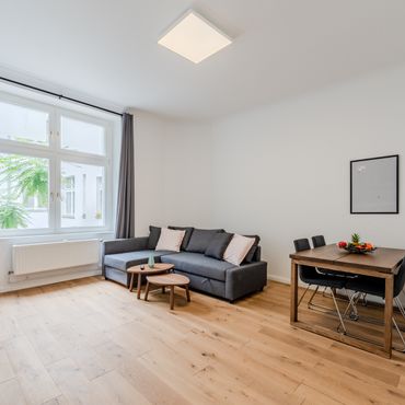 Fully Furnished, designer lighting and furnishings, one bedroom with a large living and kitchen area (Prenzlauer Berg)