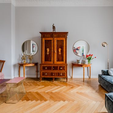 Fashionable, cozy loft in Wilmersdorf, first floor / raised ground floor, in a historic building with 3-meter-high ceilings.