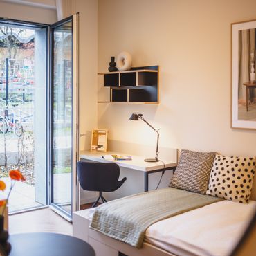 Serviced Studio Apartment with Large Single Bed and Groundfloor Terrace
