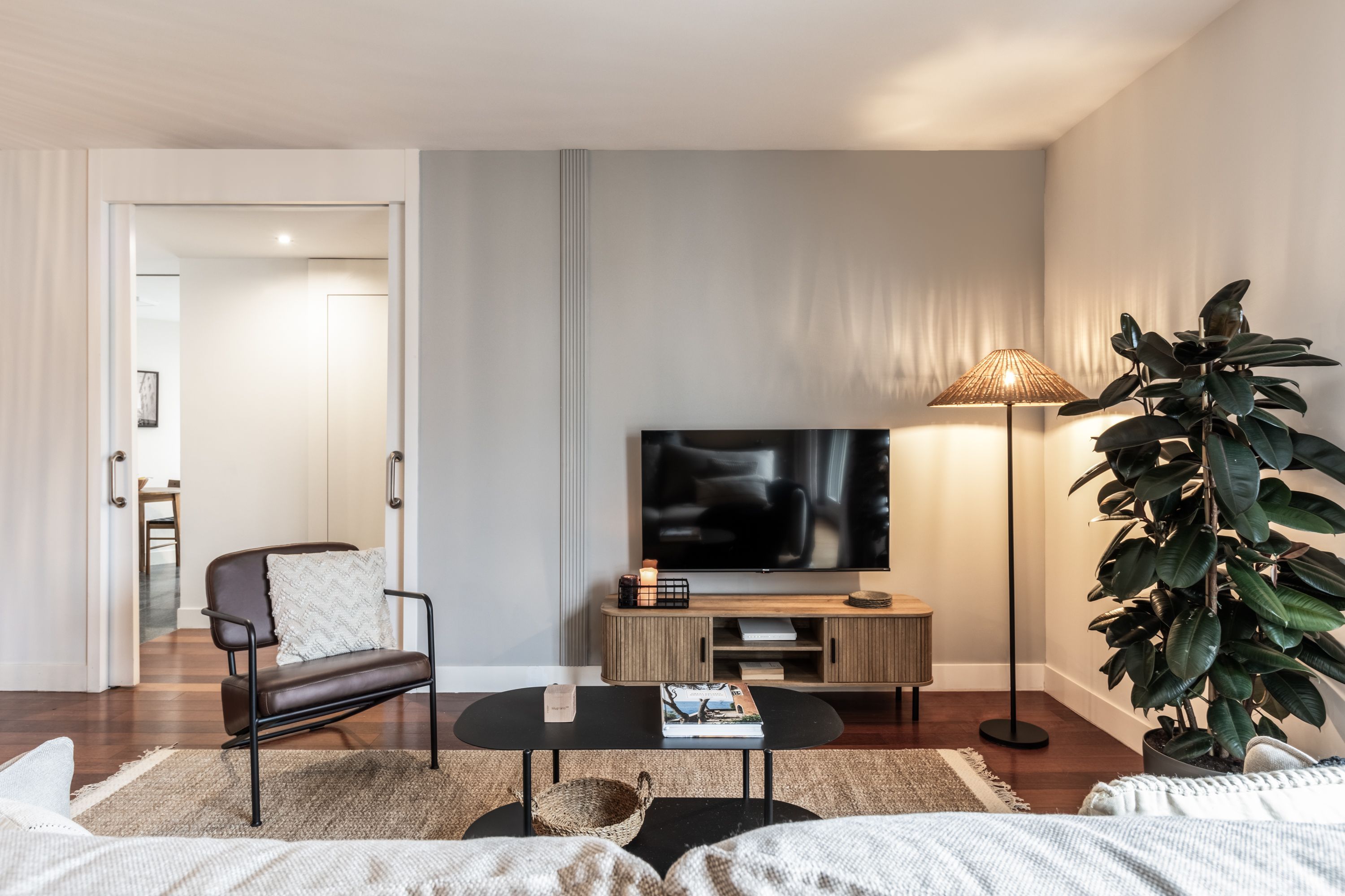 Spacious 3-Bedroom Apartment with Indonesian-Inspired Design and Private Office in Ibiza Neighborhood
