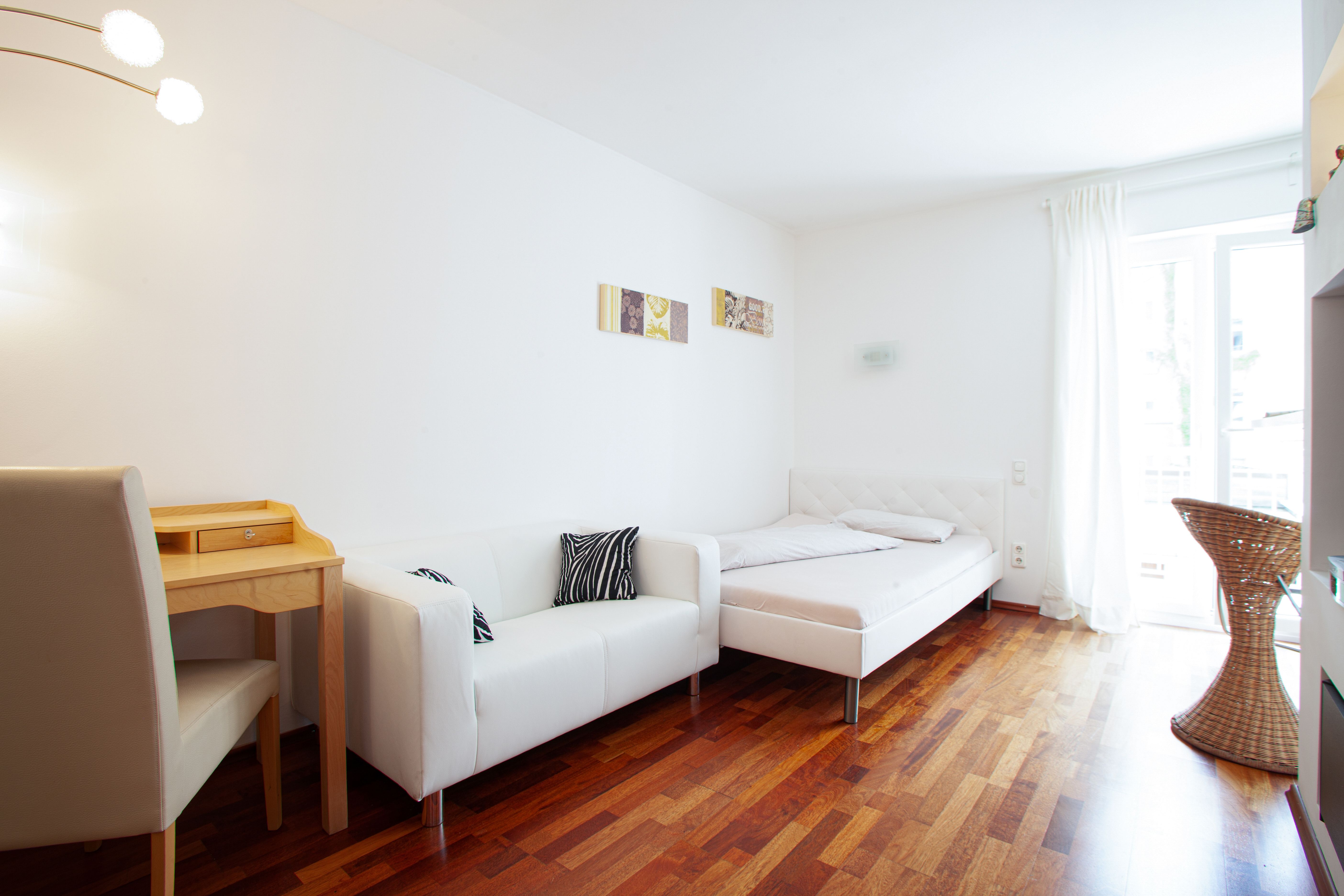 Modern studio apartment inclusive of outdoor pool, co-working and gym in Munich Obersendling