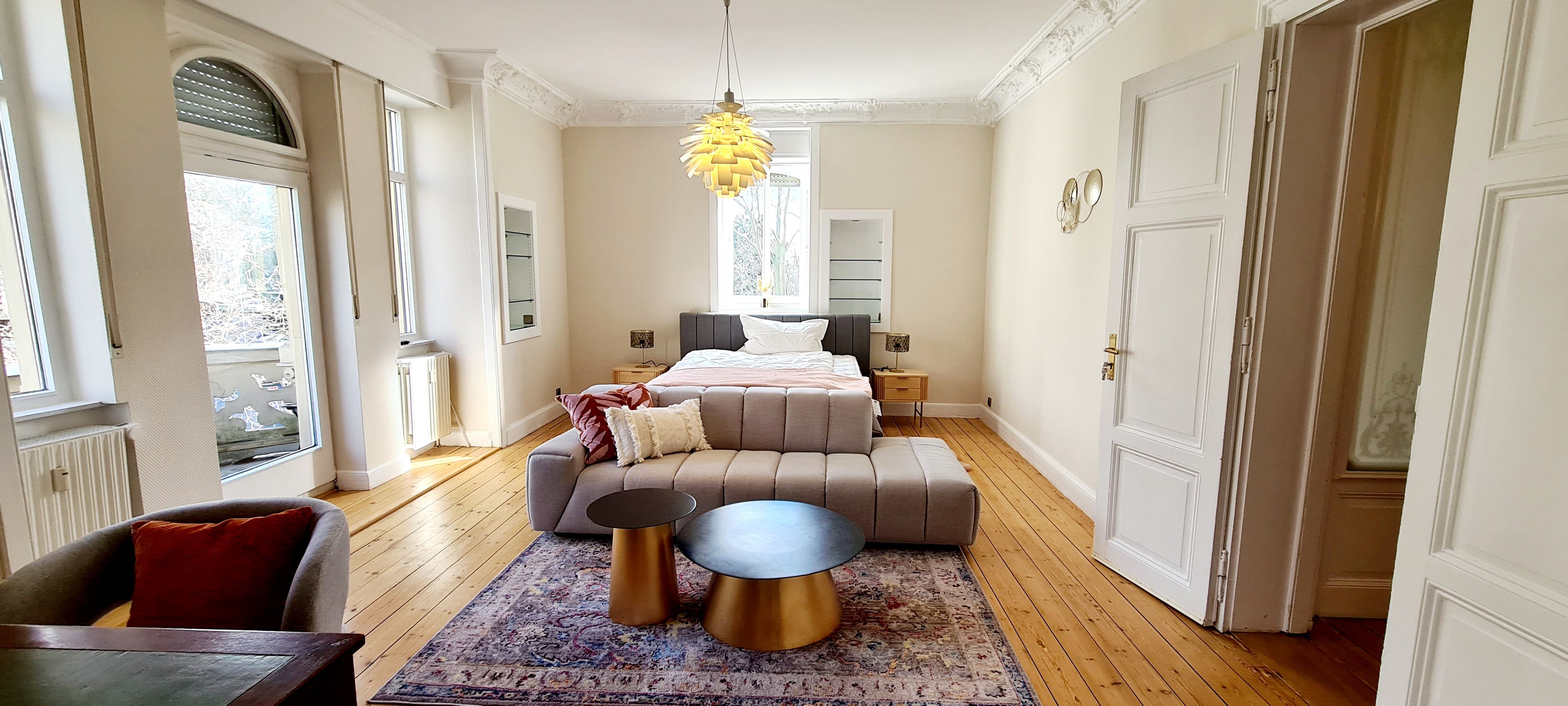 Furnished, centrally located 2-room apartment with a private entrance and winter garden in an Art Nouveau villa