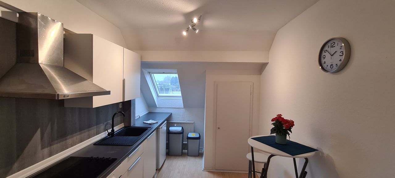 Beautiful 80m² attic apartment in a quiet apartment building with 9 parties. The attic apartment was renovated and fully furnished in November 2021. Fully equipped household. High-speed internet connection (1,000 Mbits/s) with WLAN, ideal for home office. The building is in good condition. The house has a communal, well-kept garden.