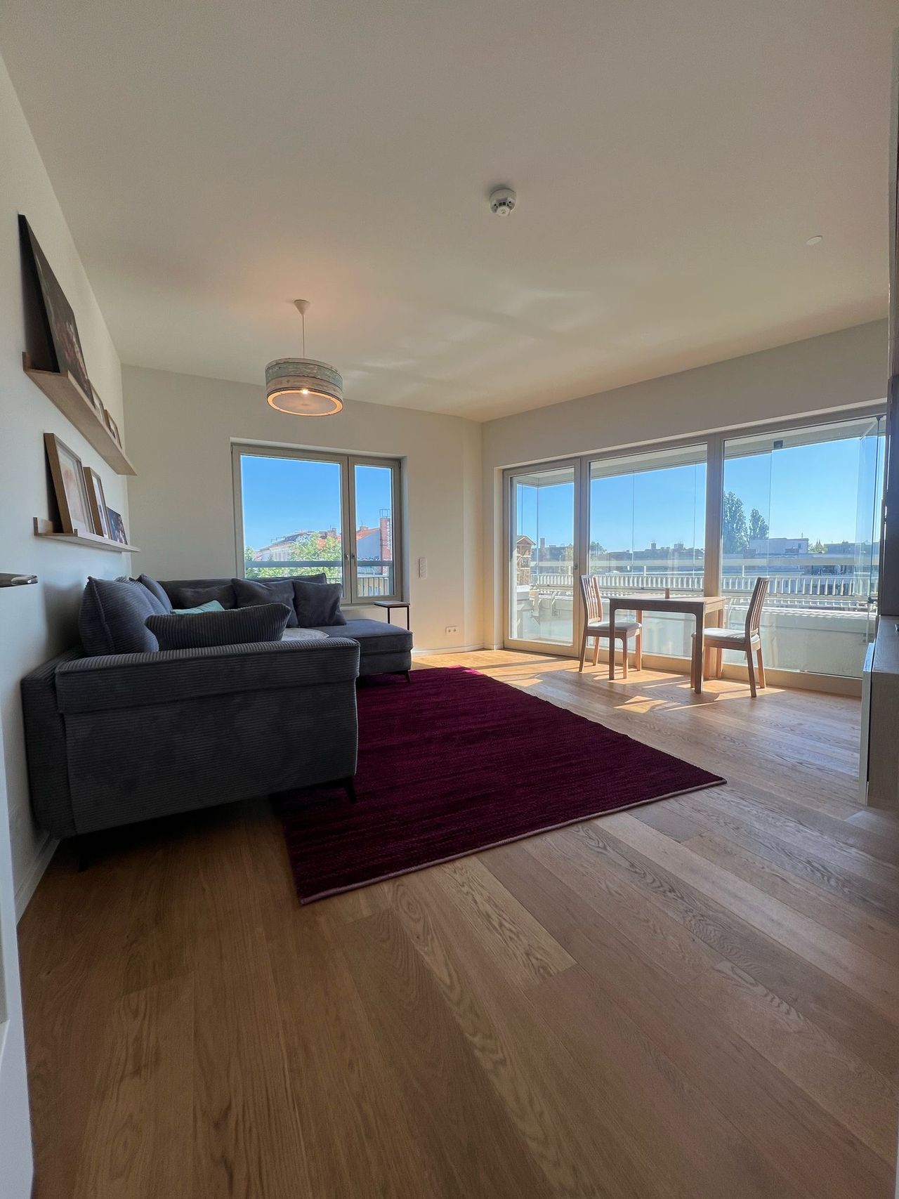 This beautiful attic apartment on the 5th floor is characterized by a luxurious interior and can be occupied immediately. The property has three beautiful rooms. The property can be easily reached via an elevator and is barrier-free. In addition to the balcony, the garden with a small playground can also be used. The neighborhood is rather young and the atmosphere between the neighbors is very good. The apartment has a fitted kitchen with high-quality Spanish designer tiles and high-quality elec...
