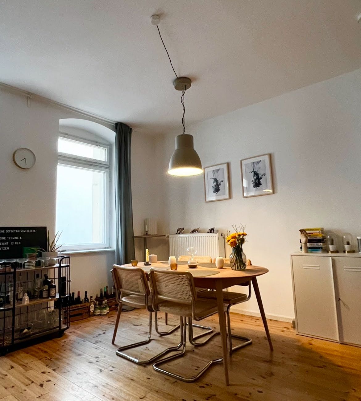 My beloved two-room apartment is located in the charming Helmholtzkiez neighborhood, quietly located in the side wing away from street noise. It features a small bathroom with shower, a fully equipped kitchen, a bedroom with a large double bed and a wardrobe, and a living room with a dining table, couch, and a small smart TV. The apartment comes fully furnished, including dishes, bedding, a dishwasher, and a washing machine. My bike can also be used. Located in the lively Helmholtzkiez neighbor...