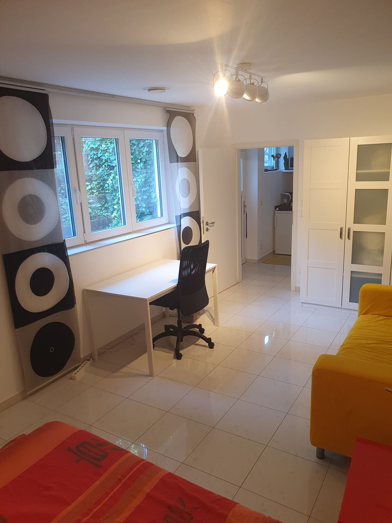 The fully furnished apartment consists of a living room/bedroom, kitchenette, bathroom with daylight and hallway. The rooms are equipped with underfloor heating and a ventilation system. The kitchen/kitchenette is equipped with all everyday utensils. Additional equipment: SmartTV 140 bed Wardrobe couch