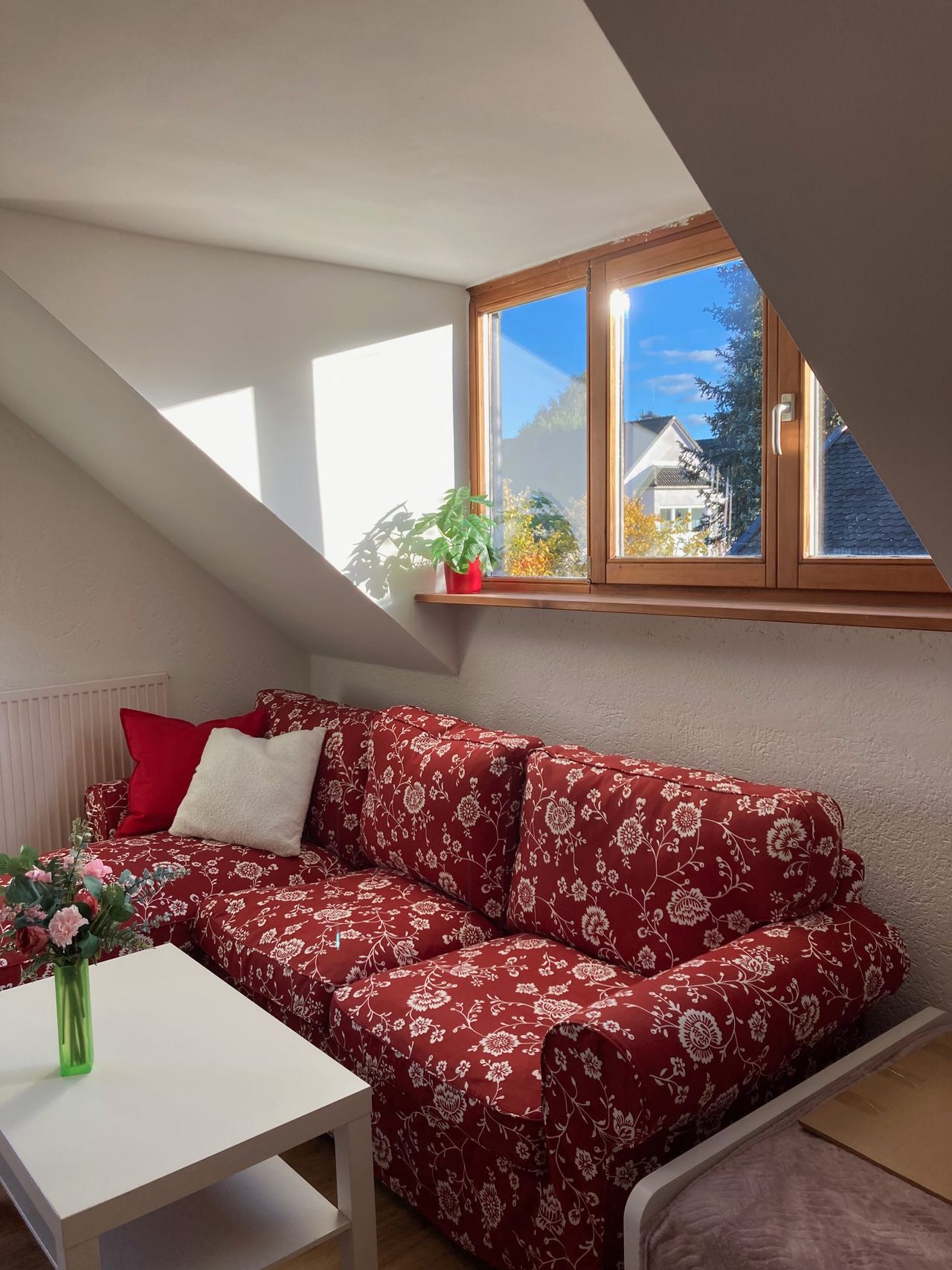 The light-flooded apartment is located in the attic of a former farmhouse in idyllic Alt-Solln. The cozy living room and bedroom have windows facing south and east. From here you enter the balcony with a view of the greenery, the kitchen area and the daylight bathroom. A washing machine and dryer are available in the laundry cellar. On the balkony you can have breakfast in the morning sun or end the day with a glass of wine. Bus lines 134, 63 and N41 run nearby and take you directly to the city ...