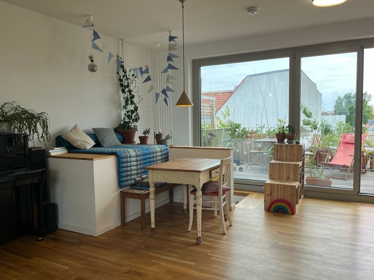 Featuring a roof terrace and a large kitchen-living room, the maisonette apartment is ideal for relaxing after long summer days in Berlin. The air-conditioned apartment is a wonderful retreat, especially on hot days.