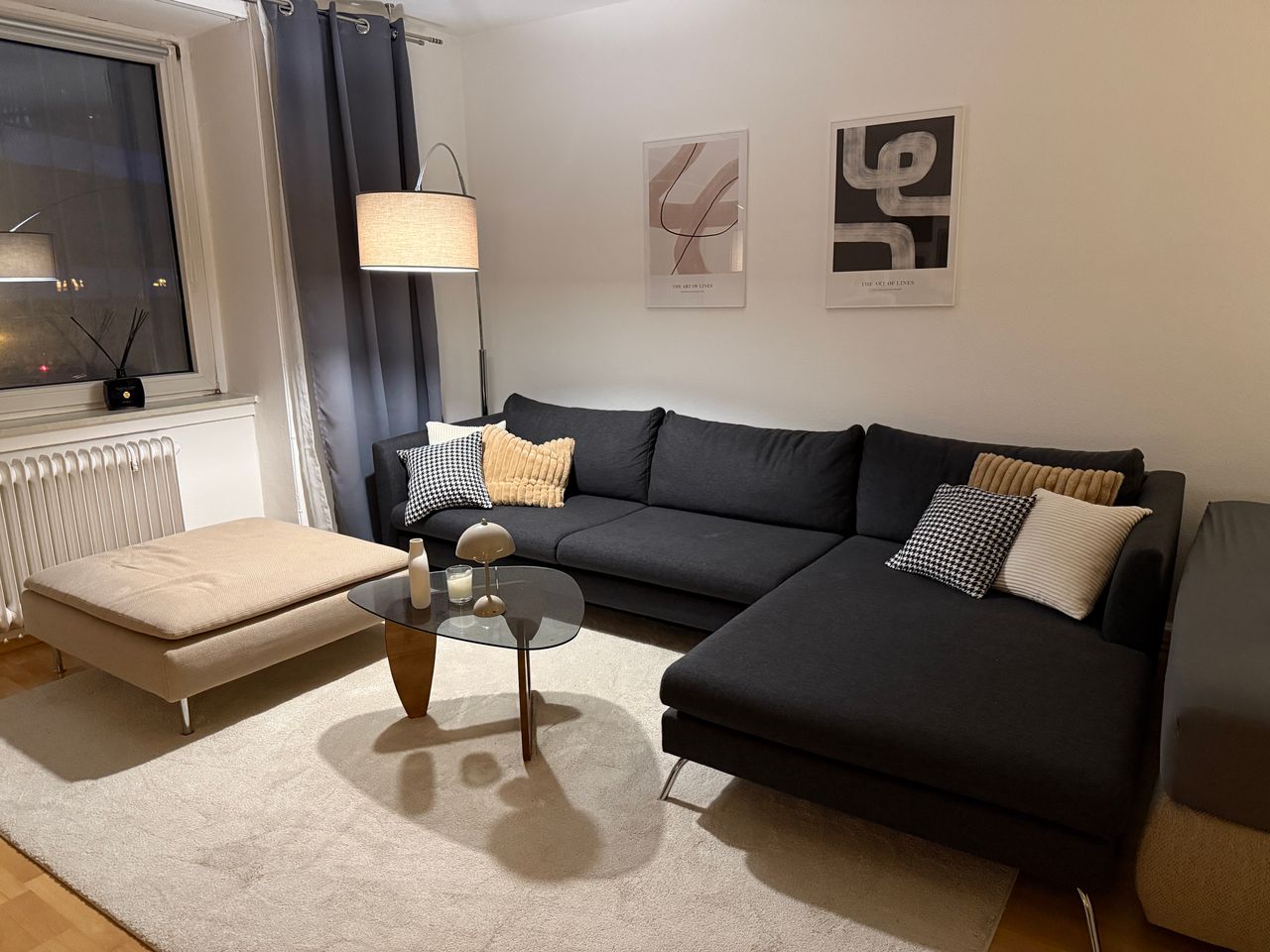 Your room (26 m²): - 1.60 m wide box-spring bed incl. bed linen - 2.70 m designer couch - Large 4K TV with HDR & streaming function - Wardrobe (mostly empty), bedside table, designer chest of drawers (remains filled) - Stylish, modern furnishings with attention to detail - Fully equipped home office with 4K screen - All lamps controllable with Apple Home Location The flat is located in Erlenstraße in Westend-Süd - quiet, green and yet central: - 2 min. walk to the underground and tram stop - S...