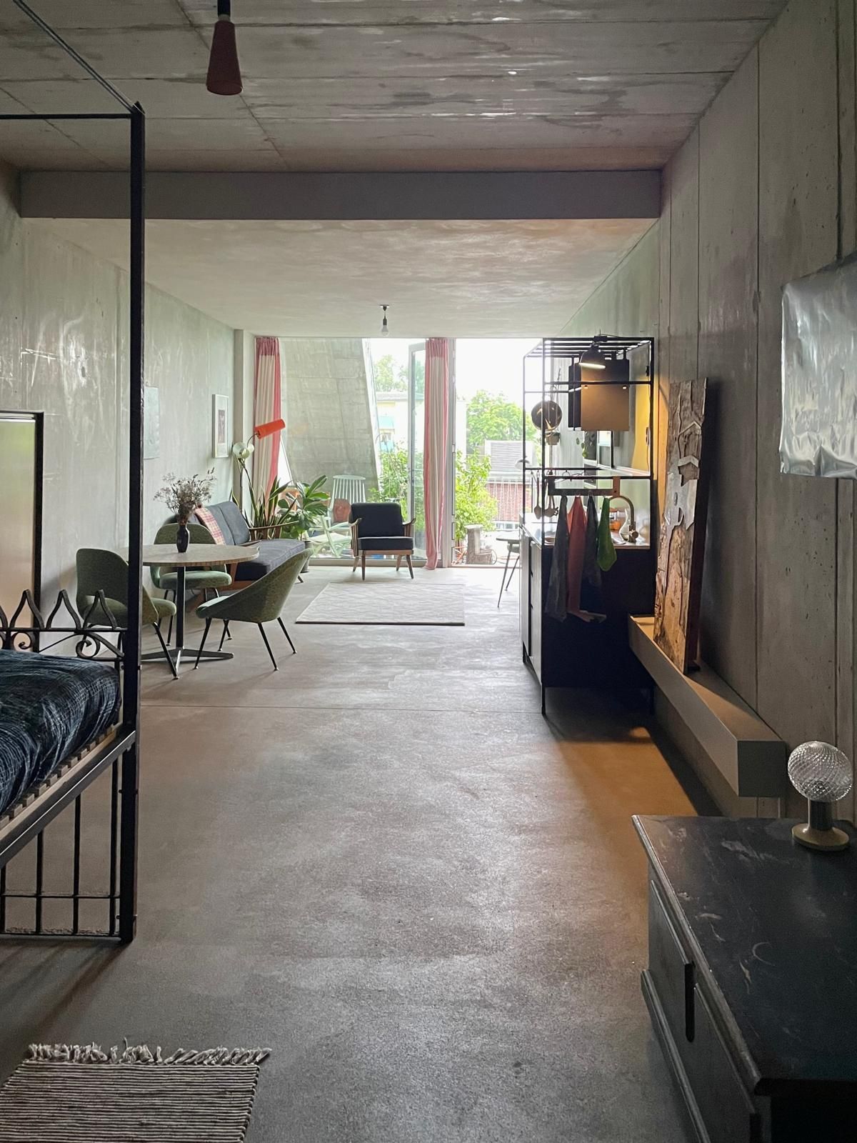 lobe Block is an architectural famous Berlin landmark. The unit is open plan.. except the bathroom. It suits one person perfectly and preferably. It has a vast terrace and access to the stunning gardens and breathtaking rooftop. There is a cool canteen and active yoga studio in the block. A bike is there for usage too .. Internet and a washroom in ground floor for usage