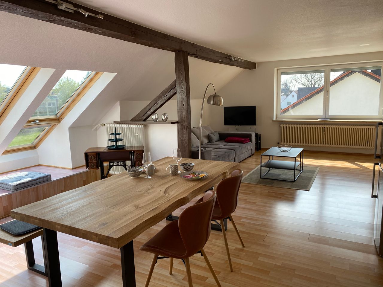 BEST WOHNEN Unsere hochwertig möblierten Dachwohnung ist frisch renoviert und ausgewählt möbliert. Die Dachgeschosswohnung im zweiten OG zeichnet sich durch den großzügigen, hellen und modern eingerichteten Wohnraum aus. Die Wohnung verfügt über ein geräumiges Schlafzimmer mit begehbaren Schrank und einem großzügigen Wohn- und Essbereich. Zur Verfügung steht Ihnen außerdem eine Einbauküche mit hochwertigem Küchenzubehör. Das Bad verfügt über eine Dusche und eine Wellness Badewanne. Zusätzlich k...