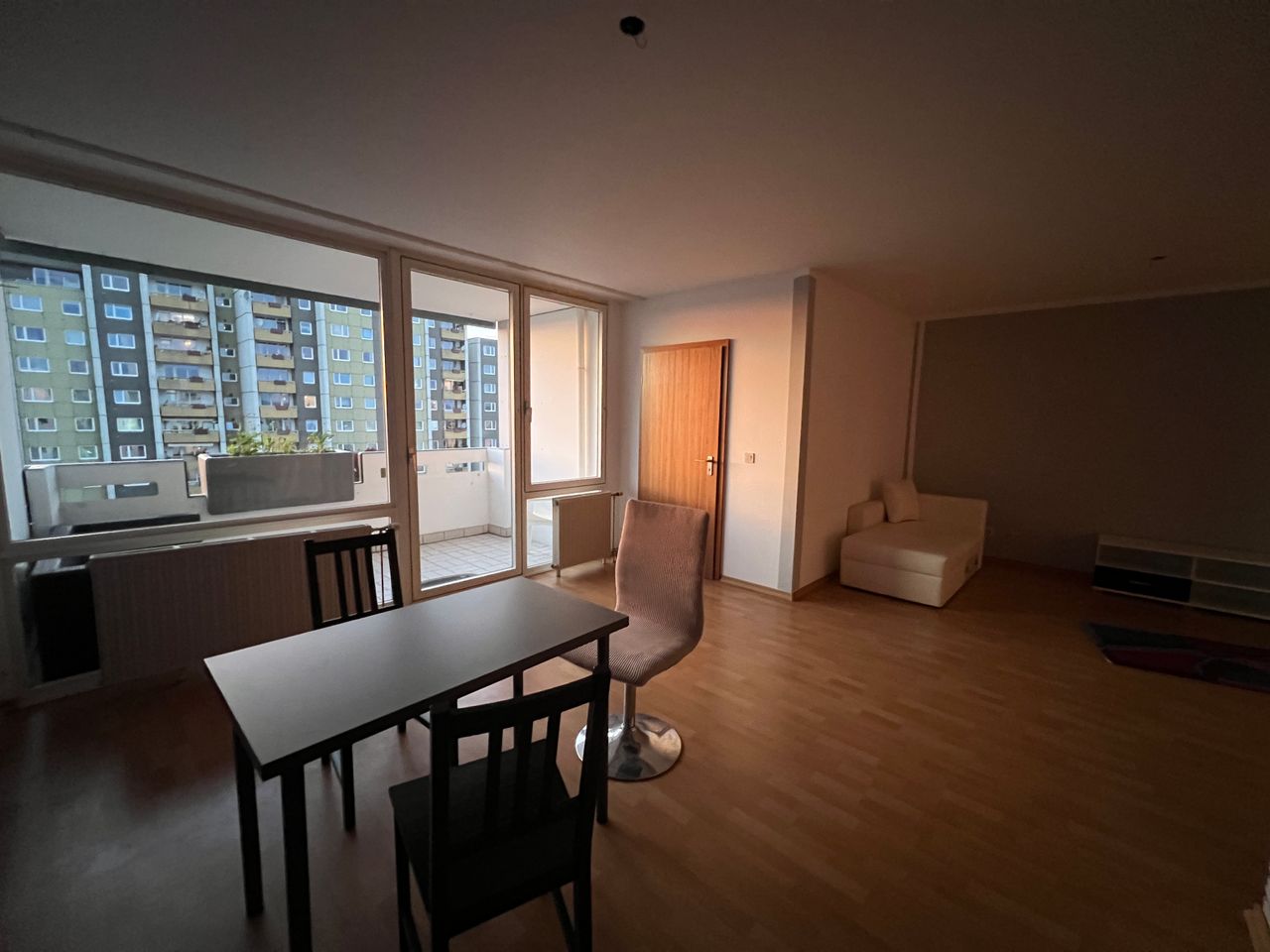 Furnished 2-room flat in the centre of Cologne-Porz The Porz shopping centre and the S-Bahn are about a 10-minute walk away, the tram is a 2-minute walk away. The flat consists of a large living/dining room with open-plan kitchen, a small bedroom, a bathroom with shower and a storage room. It is located on the 8th floor (of 9 floors). There is also a spacious balcony with a distant view of Cologne Cathedral and the Lanxess Arena. The flat faces the inner courtyard and is therefore fairly quiet.