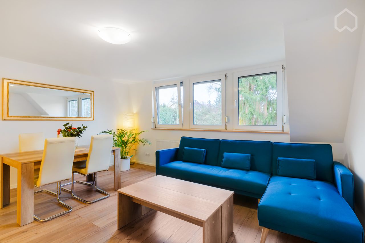 Die Dreizimmerwohnung befindet sich in einem Zweifamilienhaus im 1. Stock. Das gesamte Haus wurde in 2018 kernsaniert und ist in einem vorbildlichen Zustand. Ein Parkplatz auf dem Hof direkt neben der Haustür ist im Mietpreis eingeschlossen. Die Dreizimmerwohnung ist neu möbliert und hell. Die Gegend ist ruhig. Wohn- und Schlafzimmer liegen nach hinten zu einem parkartigen Garten hin. Küche und Arbeitszimmer liegen zur Strasse nach vorn. Eine separate Waschküche ist ebenfalls vorhanden innerhal...