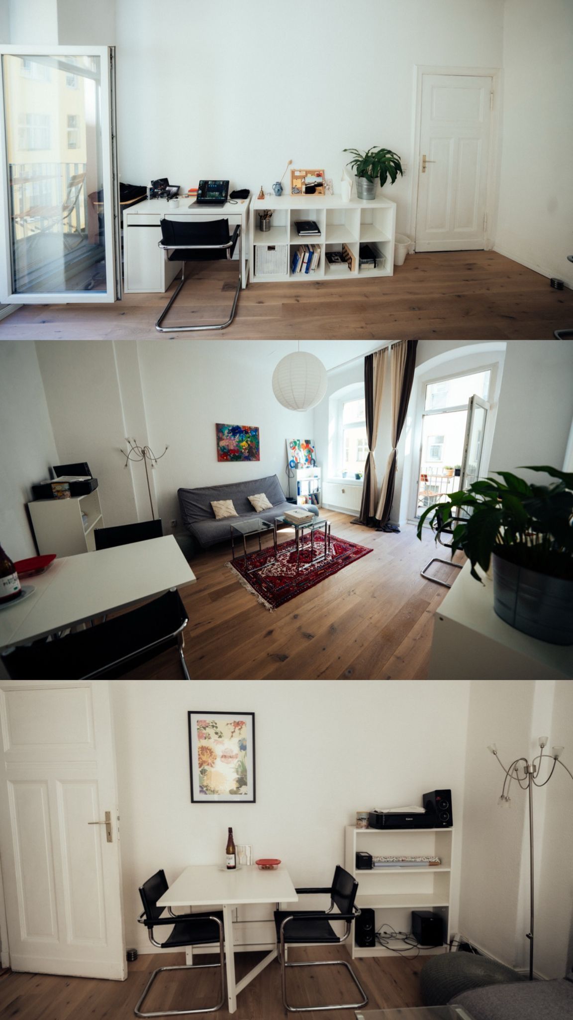We are offering a beautiful, fully furnished 2-room apartment in an old building in Berlin Gesundbrunnen for temporary rent. The apartment is in a quiet backyard location, ideal for couples or individuals. Use as a shared flat is also possible. Highlights of the apartment: - Living space: approx. 50 m2 - Rooms: 2 (living room & bedroom, also suitable for shared apartment) - Location: Quiet backyard location, near Osloer Straße - Equipment: - Fully furnished (incl. bed, sofa, cupboards, dining ta...