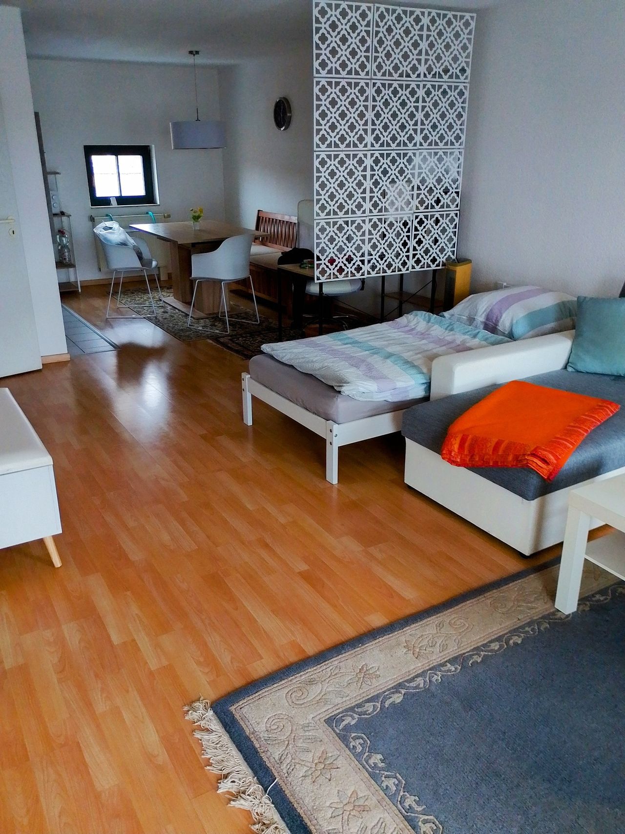 The open floor plan provides plenty of space. The bathroom is stylish and equipped with a new washing machine, the entire furnishings are absolutely contemporary. For example, a SONY flatscreen TV is a matter of course. The atmosphere is designed to make you feel completely at ease and really at home.