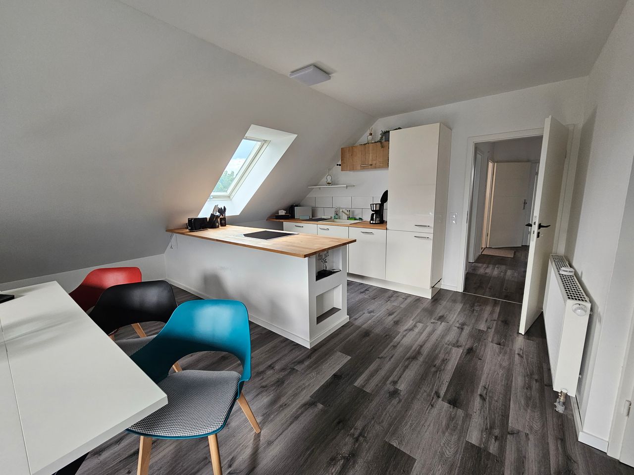 Charming apartment near Schladitzer Lake Our cozy attic apartment is located just 2 kilometers from Schladitzer Lake, which offers wonderful swimming areas, children's play areas, and idyllic spots. The apartment has 3 separate bedrooms, a modern bathroom with a rain shower, double sinks, and a washing machine. The open-plan living and dining area offers plenty of space for shared cooking evenings and relaxing hours.