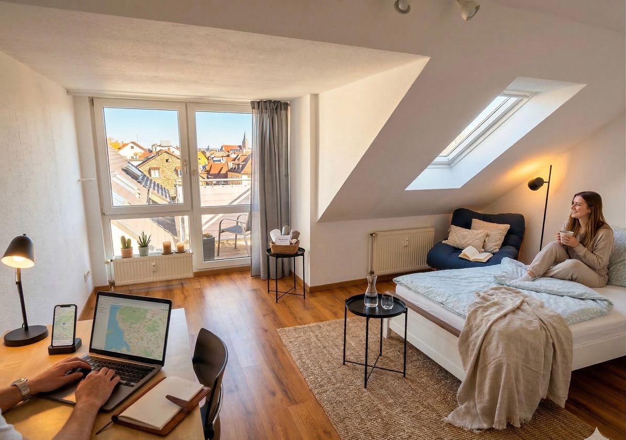 Bright and modern furnished attic studio in Bochum