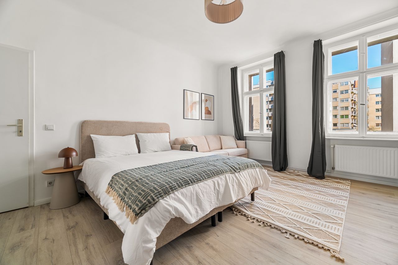 This stunning furnished studio apartment features contemporary design, a fully equipped kitchen, and a cozy living area with breathtaking views. Perfectly situated, you'll have easy access to everything that makes Berlin vibrant and exciting!