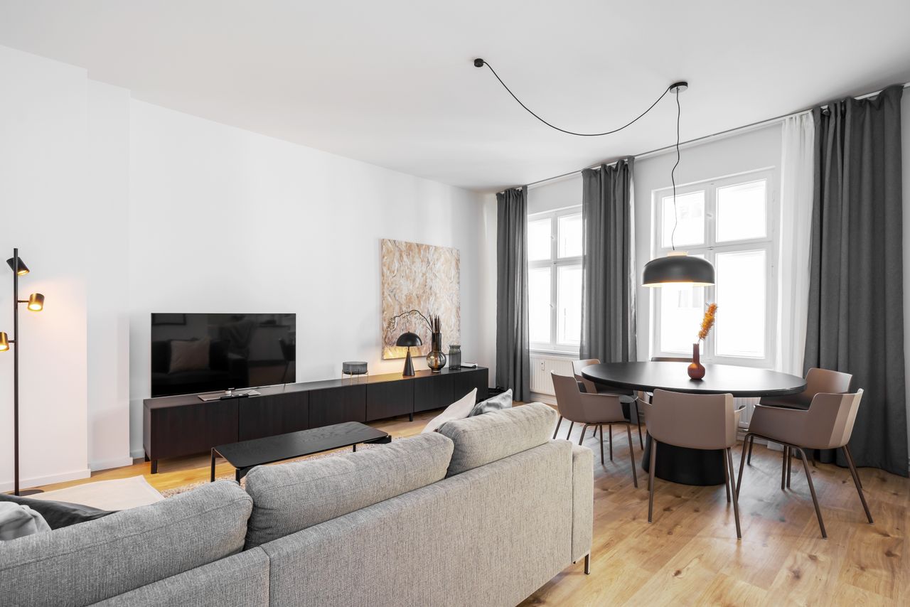 This modern 2-bedroom apartment is located in the Friedrichshain district of Berlin, known for its vibrant atmosphere and countless restaurants and coffee shops. Situated in an Altbau building, this apartment offers a charming blend of historic features and contemporary design. Conveniently, it is also close to public transportation, making it easy to explore the city. Inside, the apartment is fully furnished with everything you need for a comfortable stay. The kitchen is fully equipped, allowi...