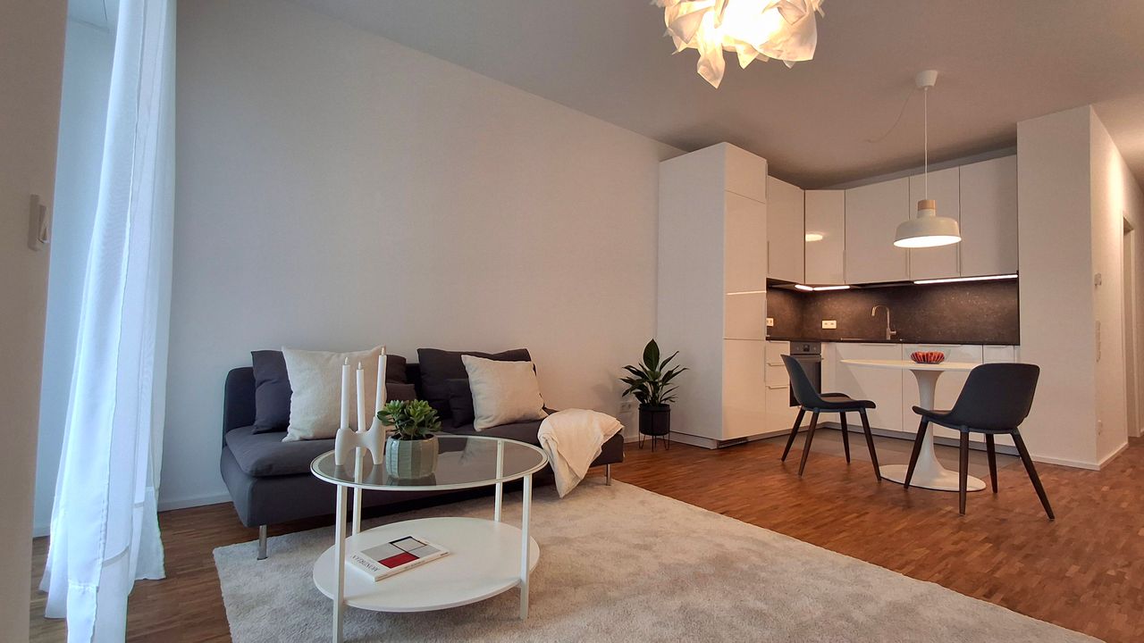Perfect for professionals, expats and remote workers looking for a stylish, fully equipped move-in ready apartment. This modern first occupancy 2-room apartment is a part of Vido project and combines comfort, design and functionality, featuring a spacious private terrace. Key features: • First occupancy – brand new furniture • Large terrace • High-speed fiber internet • Dedicated home-office workspace (120×70) with monitor • Fully equipped modern kitchen • Washer & tumble dryer • Ready to mo...