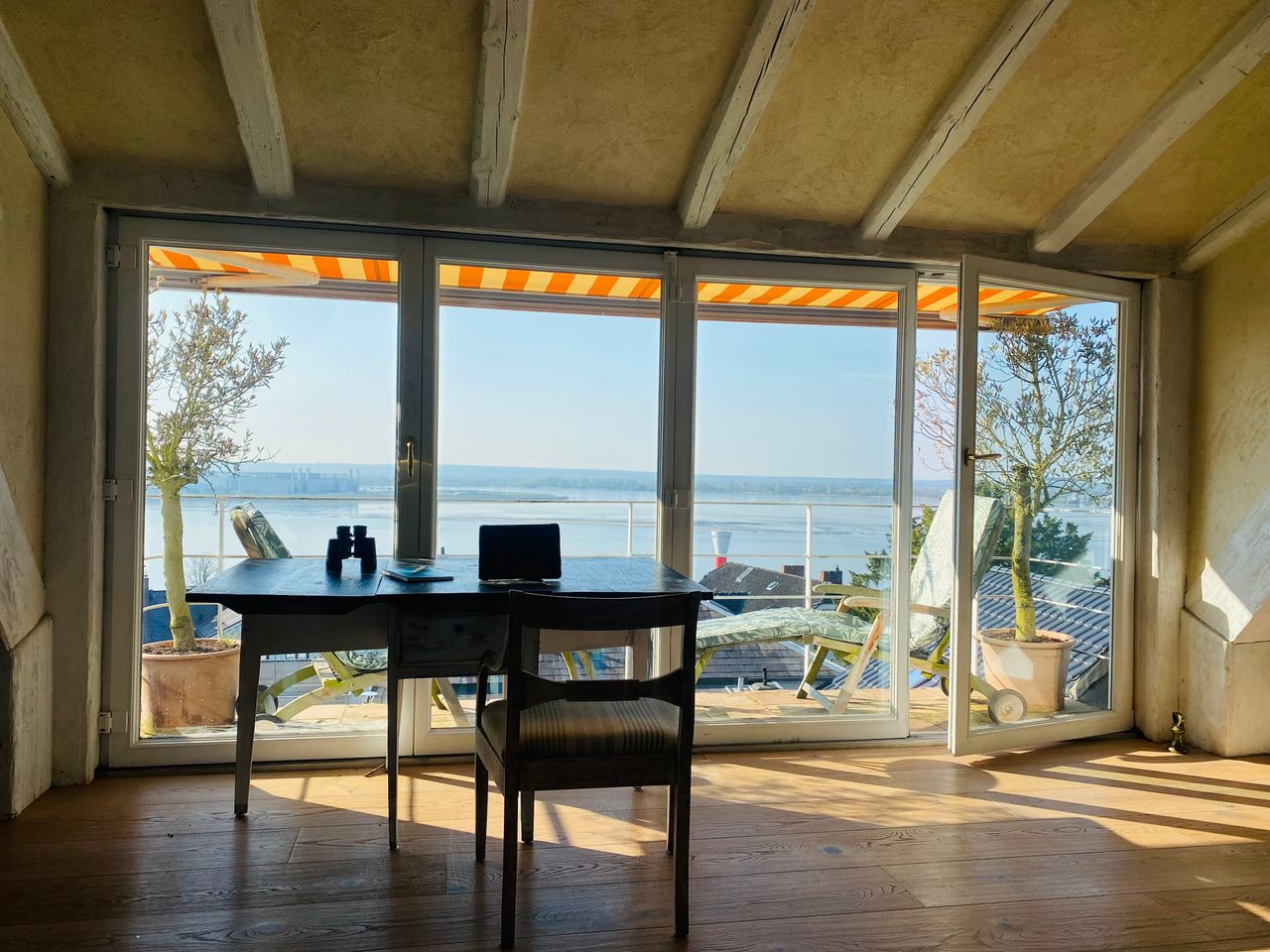 Flat in the ! Treppenviertel ! neighborhood. Amazing views of the Elbe River, bakeries, supermarkets, pharmacys, Restaurants and the Elbe in walking distance 5 minutes. Airbus and Daisy nearby. private residence, and there is a contact person you can reach by telefon. Cozy and traditional furnishings - bright and friendly.You have a completely private sun deck on your own balcony with a view of the Elbe and the passing ships.There is also a private terrace to enjoy the sun. bus and Train stat...