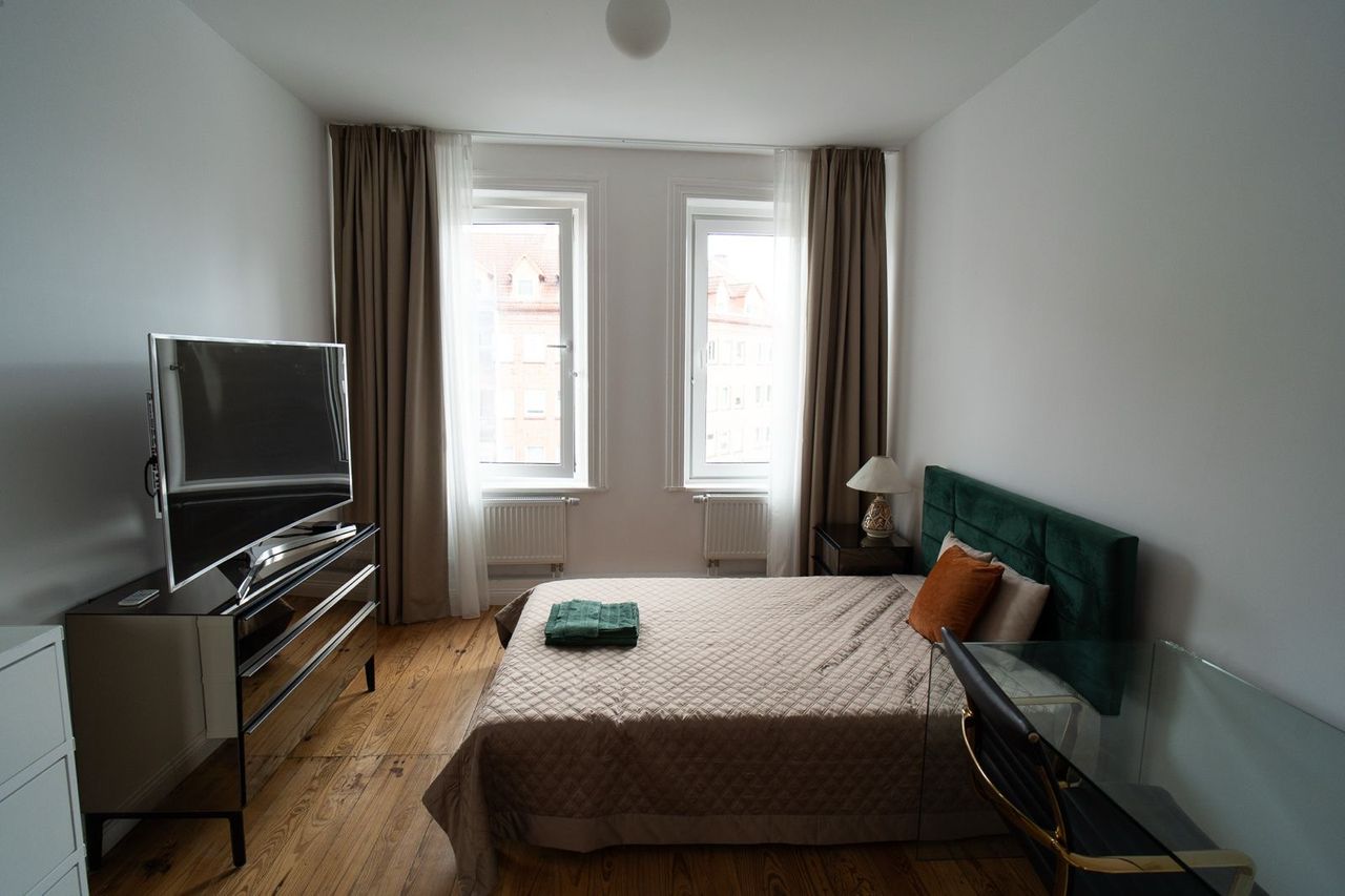 Bright and fully furnished room in a newly renovated 2-bedroom apartment with a total of 51 m2 (new WG formation). Both rooms are available, making it ideal for moving in with a friend. Each room comes with a bed, desk, wardrobe, TV with Apple TV, and stylish décor. The modern kitchen is fully equipped with all essentials, including a washing machine. The brand-new bathroom features elegant tiles and a walk-in rain shower. Located in the heart of Hamburg-Winterhude, you’ll be surrounded by cafés...