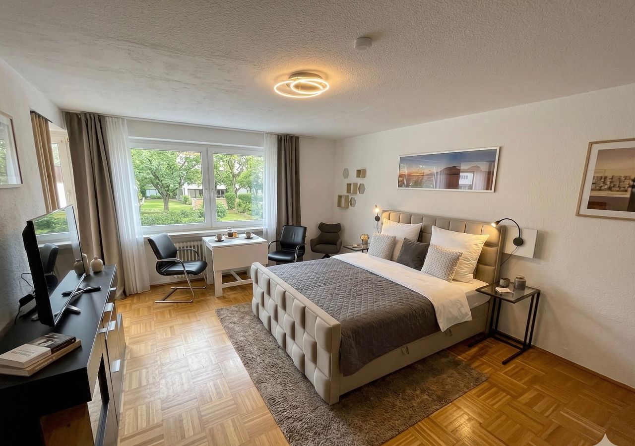 THE STUDIO Bright 36 sqm apartment on the 1st floor featuring a combined living and sleeping area. Equipped with a comfortable double bed, bedside table, and modern lighting. Includes a dedicated workspace and ample wardrobe storage. KITCHEN & BATH Separate, fully equipped white kitchenette (stove, fridge, sink, and utensils). The modern bathroom features dark floor tiles and a high-quality glass shower cabin. HIGHLIGHTS & SERVICE ALL-INCLUSIVE: Rent covers electricity, heating, water, high-s...