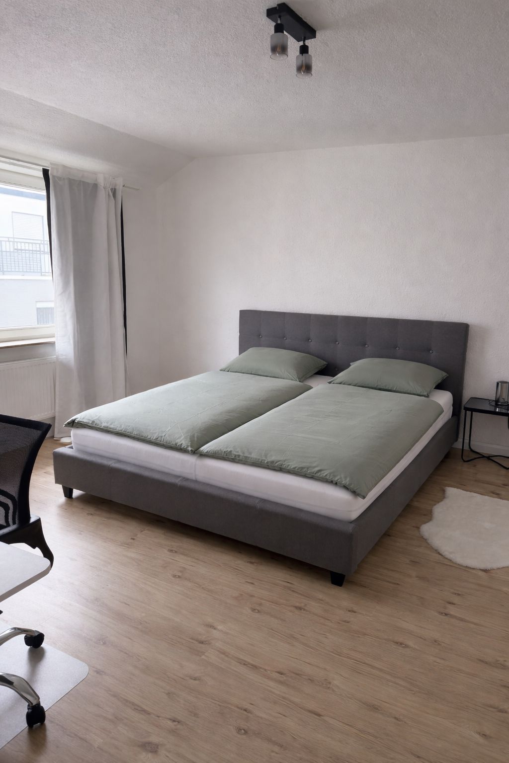 This stylishly renovated 2-room apartment in the heart of Mannheim (T6 33) offers 53 sqm of modern living comfort. Equipped with a high-quality fitted kitchen, a comfortable 180 cm wide bed, a spacious wardrobe, and an electric desk, it’s perfect for relaxing evenings and productive home office days. A fold-out couch provides additional space for a third person. Kitchen includes a dish wahser. Additional amenities include a smart TV with Netflix access and a newly renovated bathroom with a was...