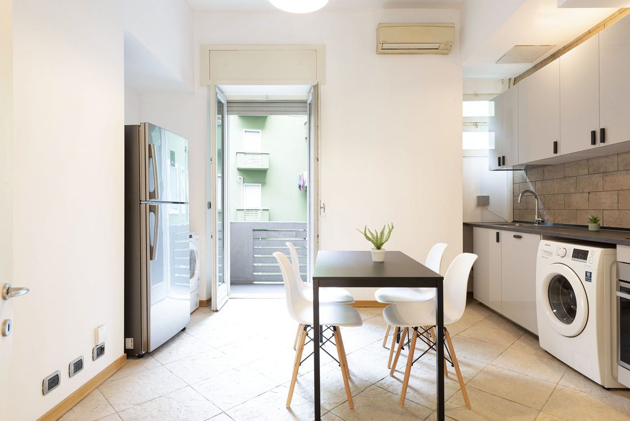 È prevista una Admin Fee una tantum di 1085.8€ (incl. IVA), pagata al property management. Questo appartamento condiviso dispone di 4 camere da letto e 1 bagno, offrendo uno spazio abitativo confortevole e ben attrezzato. I servizi principali includono aria condizionata, servizio di portineria, letto matrimoniale, scrivania e armadio. L'immobile vanta inoltre una cucina completamente attrezzata con lavastoviglie, un balcone in comune e una lavanderia con lavatrice, asciugatrice e set da stiro. ...