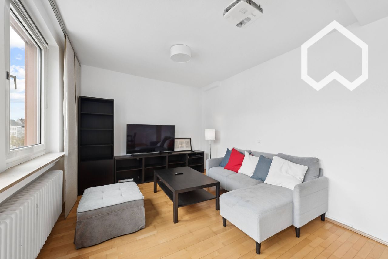 Central apartment at Cologne Heumarkt! Old town & shopping street and museums in 3 min. walking distance. Cathedral, main station & fair easily accessible. Restaurants, supermarkets in the immediate vicinity. 1 bedroom, fully equipped kitchen, bathroom with shower, cozy living room with dining table & large Smart TV. Washing machine available. 3rd floor in quiet, family atmosphere. Bright workspace & WIFI available. Parking space in underground garage available for rent in the immediate vicinity...
