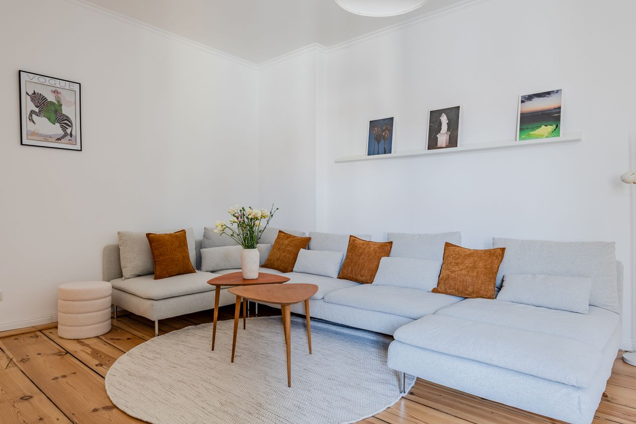 HOUSE Set in a classic Berlin Altbau with elegant high ceilings and timeless character. The apartment sits in the quiet rear building, tucked behind a peaceful inner courtyard that keeps city noise away while staying right in the heart of Wedding. APARTMENT Step into a warm, inviting two room home designed for comfort and easy living. A spacious hallway welcomes you and connects every area of the apartment in a smooth, practical layout. The fully equipped kitchen has everything you need to cook...