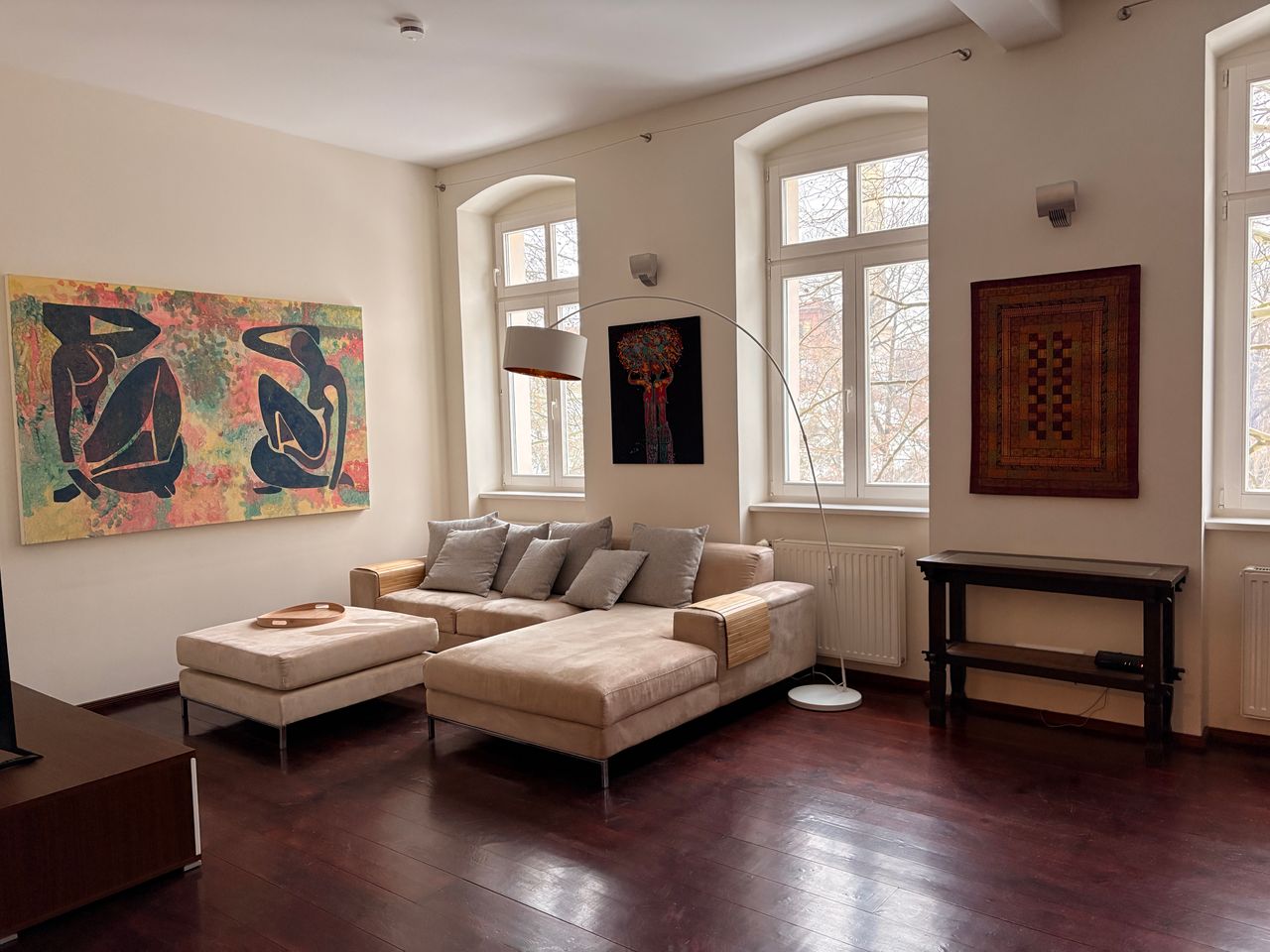 This bright and fully furnished 3-room apartment in the heart of Prenzlauer Berg offers 97 sqm of comfortable living space. It features a spacious bedroom with a king size bed, a large living room filled with natural light, a cozy couch, and a generous dining table—perfect for hosting dinners with friends or family. The third room can serve as a home office with a desk already in place, or be easily converted into a guest room with a sofa bed. The apartment also includes a modern bathroom with ...