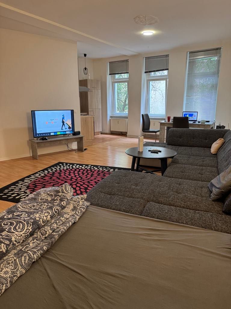 I am subletting my spacious 50 m² studio apartment in Moabit. The apartment is fully furnished and equipped with everything you need for comfortable living: sofa, TV, bed, table, wardrobe, washing machine, and a fully equipped kitchen with oven, microwave, and all necessary kitchenware. You can move in with just your suitcase. The studio is bright and welcoming, featuring three large windows that provide excellent natural light. The location is ideal: only 20 minutes to Berlin Central Station....