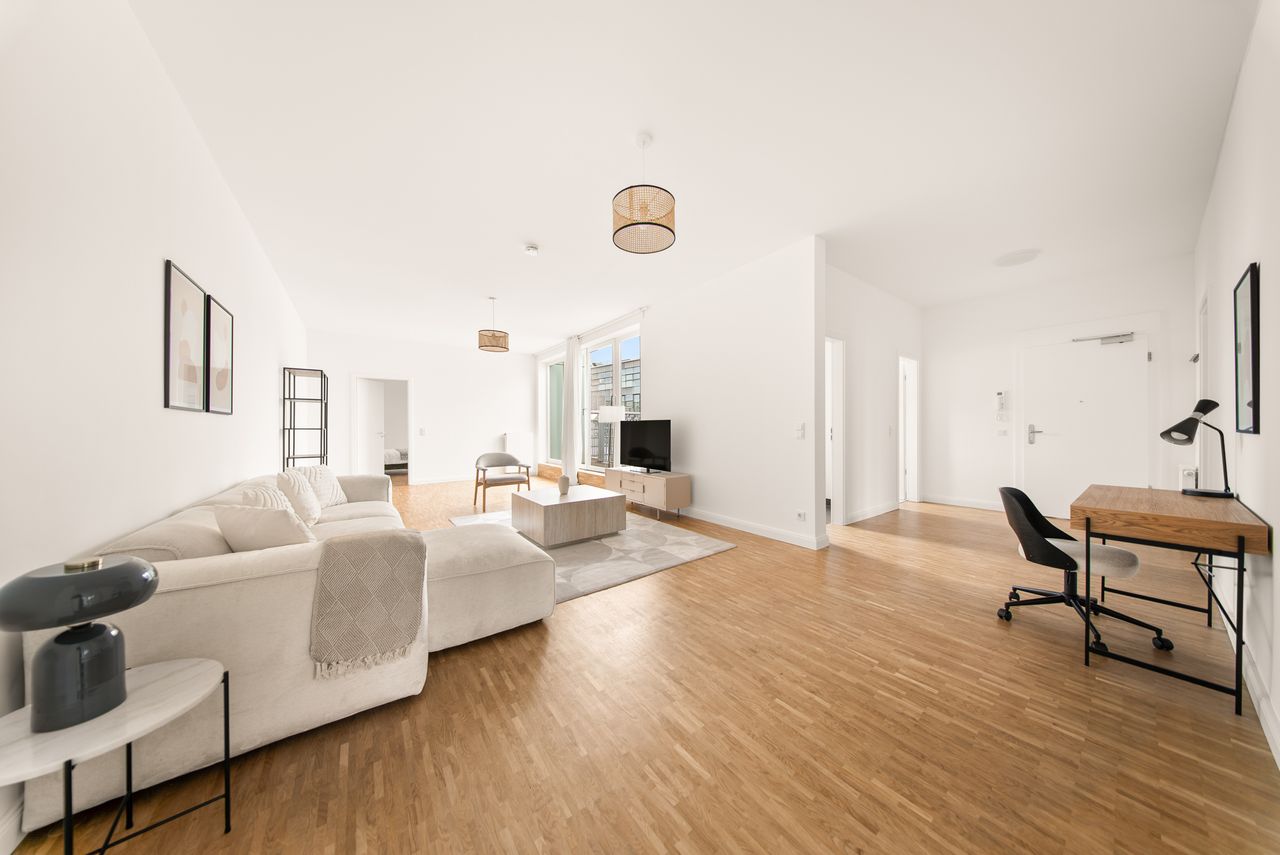 This stunning furnished three bedroom apartment features contemporary design, a fully equipped kitchen, and a cozy living area with breathtaking views. Perfectly situated, you'll have easy access to everything that makes Berlin vibrant and exciting!