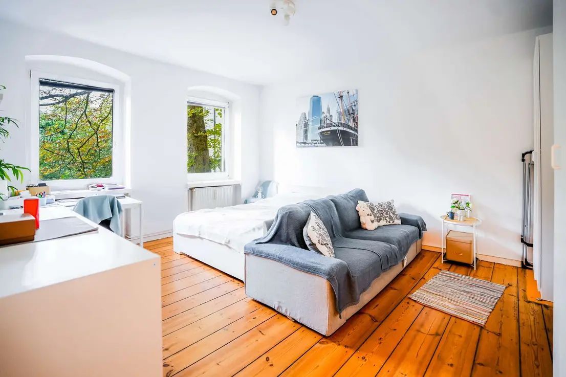This charming apartment in the heart of Berlin, in a sought-after location, offers modern living with style. On 33 m² of living space, you will find a spacious living area, a cozy bedroom and a modern bathroom. A comprehensive renovation in 2023 ensures contemporary living comfort. The stylish and functional details are particularly noteworthy: original, carefully refurbished elements and elegant floorboards give the apartment a unique character. A cellar compartment rounds off the offer. Idea...