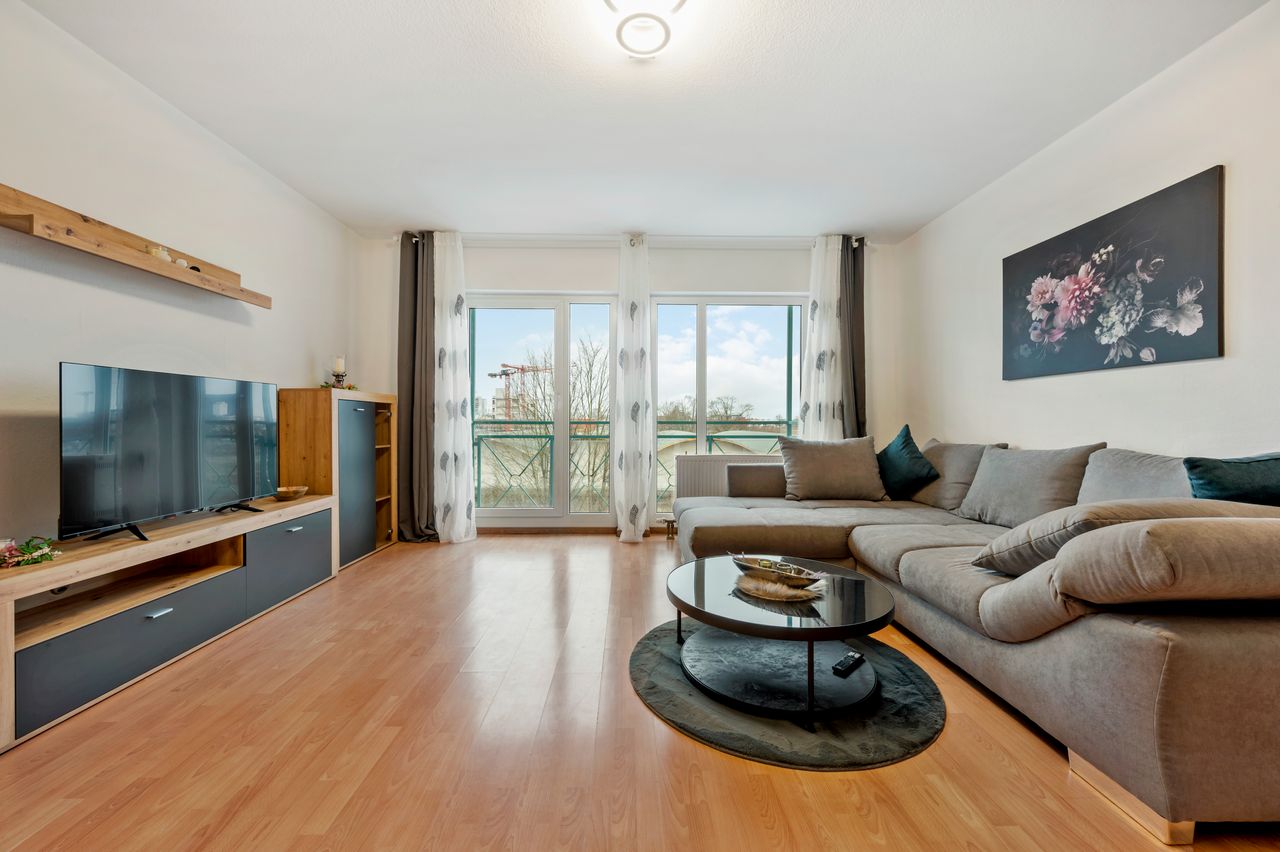 This generously sized two-room apartment combines urban living with tranquil relaxation. The apartment underwent a high-quality partial renovation a year ago and boasts a modern design concept and is fully furnished – all you need to do is unpack your suitcases. Enjoy a brand-new bathroom and a modern fitted kitchen. The spacious, bright rooms offer plenty of room to spread out and create an airy, inviting atmosphere. Feedback geben