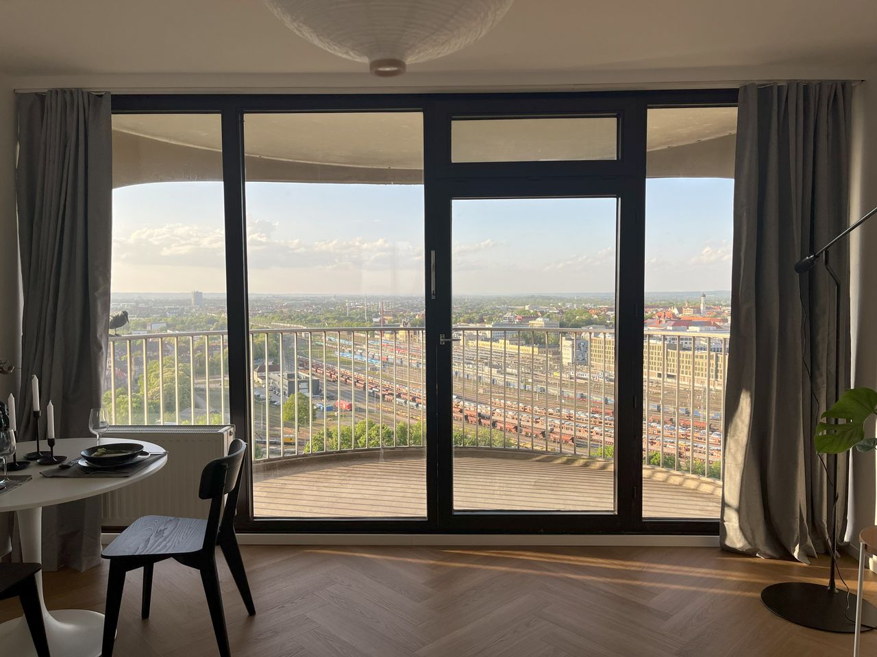This high-quality, approximately 34 m² apartment is situated on the 21st floor of one of Augsburg’s most iconic landmarks, offering an unrivaled panoramic view of the city center and, on clear days, the Allgäu Alps. The spacious balcony seamlessly extends the living area outdoors, creating a unique atmosphere of comfort and relaxation. The apartment has been extensively renovated and elegantly furnished, with a focus on premium materials and timeless design. It is move-in ready and comes equipp...
