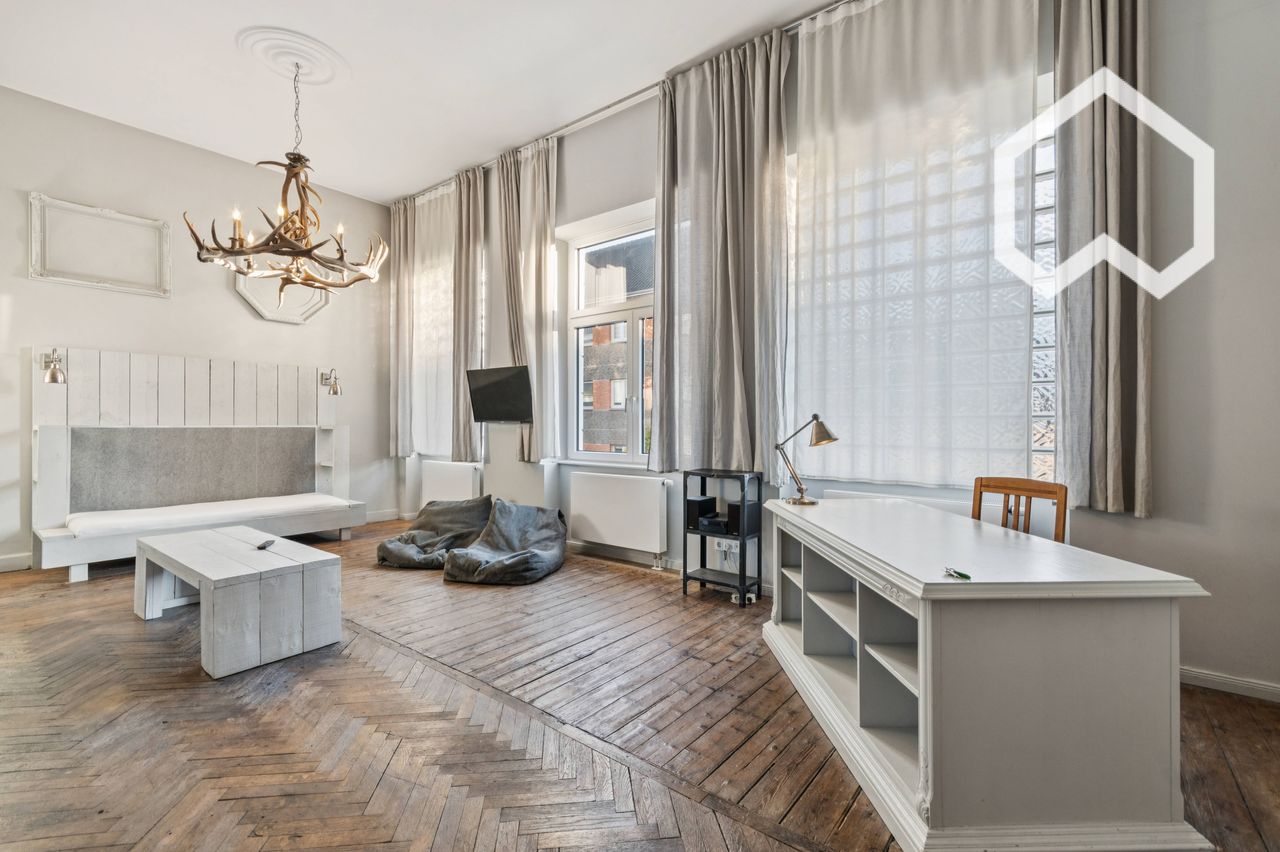 This spacious 69 sqm apartment impresses with its open loft concept. The highlight is the cozy sleeping area with a comfortable bed, accessible via a charming internal staircase, ensuring a clear separation between living and sleeping quarters. The apartment comes fully furnished and offers plenty of space in a quiet area of Essen. A beautiful, large garden is available for shared use.