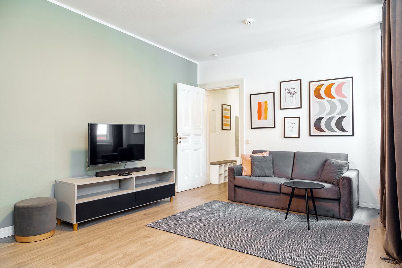 Welcome to your stylish modern studio apartment nestled in a charming Altbau building in the vibrant heart of Mitte, Berlin. Situated amidst a plethora of restaurants, coffee shops, and cultural hotspots, this cozy abode offers the perfect blend of comfort and convenience. Enjoy easy access to the nearby park for leisurely strolls or unwind by the tranquil Kanal just moments away. Inside, the apartment boasts contemporary furnishings and a well-equipped kitchen, ensuring a seamless living exper...