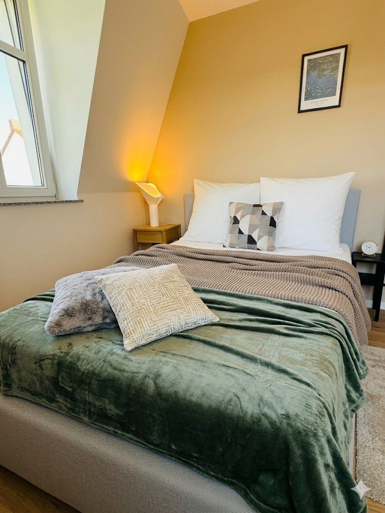 This stylishly renovated and fully furnished 2-room apartment is located on the second floor of a well-maintained historic building in the peaceful Rethelstraße 5 in Dresden-Kaditz. With approx. 44 m² of living space, it offers a bright and modern atmosphere – ideal for professionals, commuters, or guests staying in Dresden for an extended period. Features: Bright living room with a comfortable sofa, dining table, and smart TV Separate bedroom with a cozy double bed and large wardrobe Fully equ...